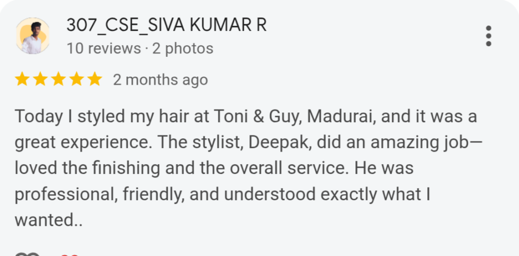 Toni&Guy Essensuals Anna Nagar, Madurai is a premium hair and beauty salon in Madurai, offering international-standard hair, skin, and grooming services for men and women.